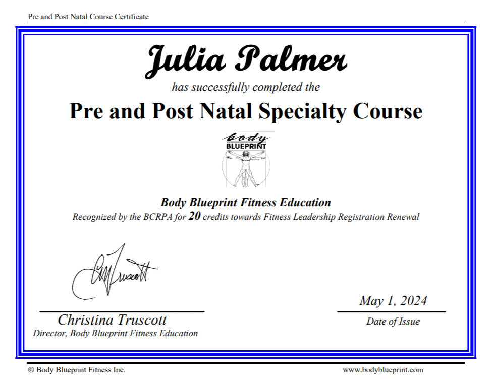 Certified in Pre/Postnatal Training